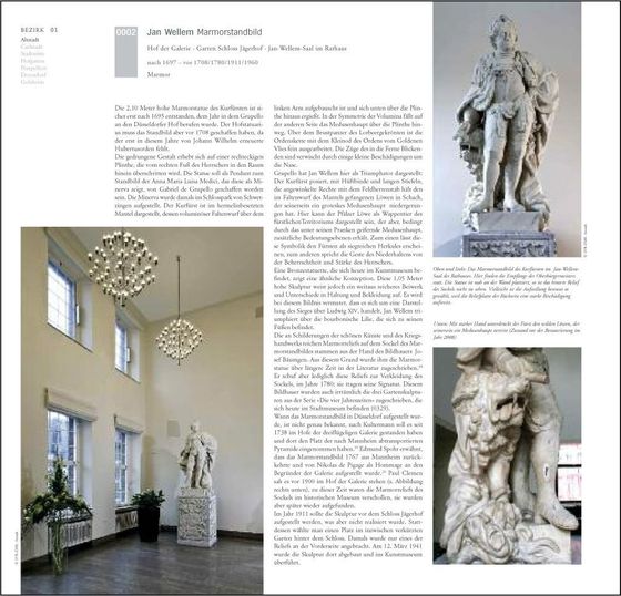 Vor jedem Stadtteil im Buch eröffnet ein Luftbild das Kapitel. Darauf sind alle Objekte zum leichten Auffinden ihrer Position in den Straßen eingezeichnet. Unterschiedliche Farben kennzeichnen die Kunstwerke als vorhanden, versetzt, verschwunden oder zerstört.