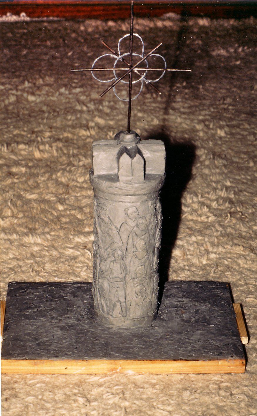 Die für Klein typischen Reliefszenen aus Bronze sollten die Säule umfangen und aus dem Leben der Möche berichten.