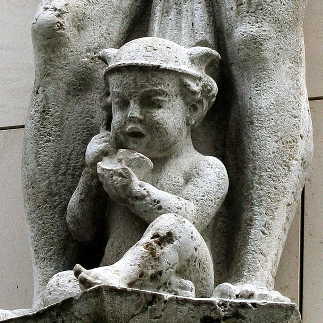 1925 schuf Bildhauer Carl Neuhaus für das damals neu erbaute Fernsprechamt auf der Königsalle lebensgroße, barockisierende Skulpturen für die Fassade. Zu deren Füßen sitzen die beiden kleinen Putten, die, in der neuen Zeit angekommen, per Telefon miteinander kommunizieren. Beim Abriss im Jahr 2000 retteten die Architekten die kleinen Kerle und platzierten sie erneut an der Fassade des neuerbauten Event-Kaufhauses »Sevens«