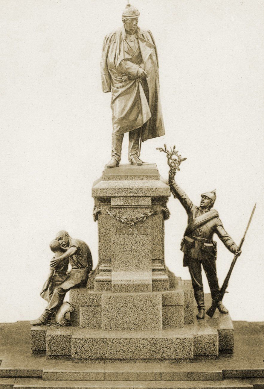 Größter Beliebtheit erfreute sich seit der Aufstellung 1901 auf dem Alleeplatz dieser Teil des Moltke-Denkmals: Ein alter Schmied erzählt seinem Enkel von seinen Heldentaten im Krieg. Da war der General auf dem Podest und der Soldat auf der anderen Sockelseite, der dem Generalfeldmarschall den Lorbeerzweig reicht, nur Beiwerk.