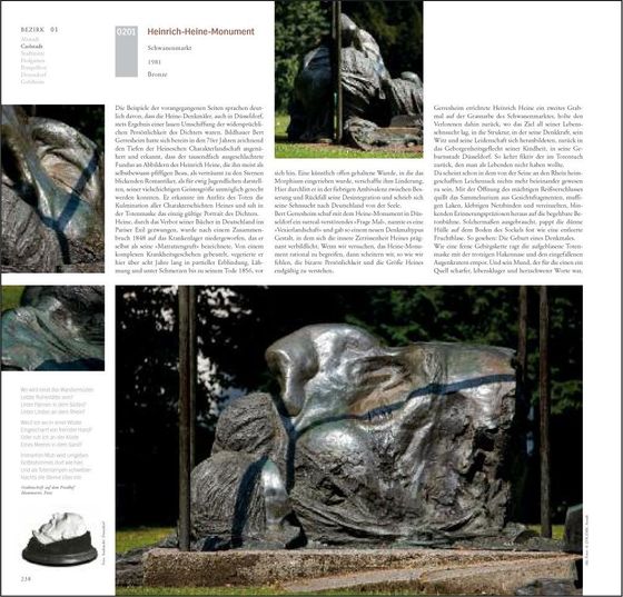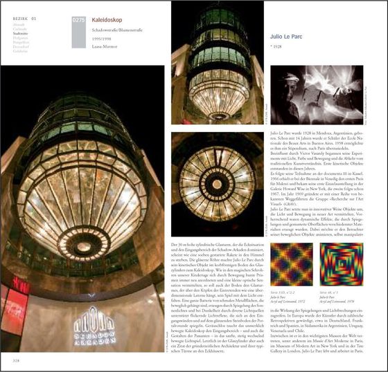 Vor jedem Stadtteil im Buch eröffnet ein Luftbild das Kapitel. Darauf sind alle Objekte zum leichten Auffinden ihrer Position in den Straßen eingezeichnet. Unterschiedliche Farben kennzeichnen die Kunstwerke als vorhanden, versetzt, verschwunden oder zerstört.