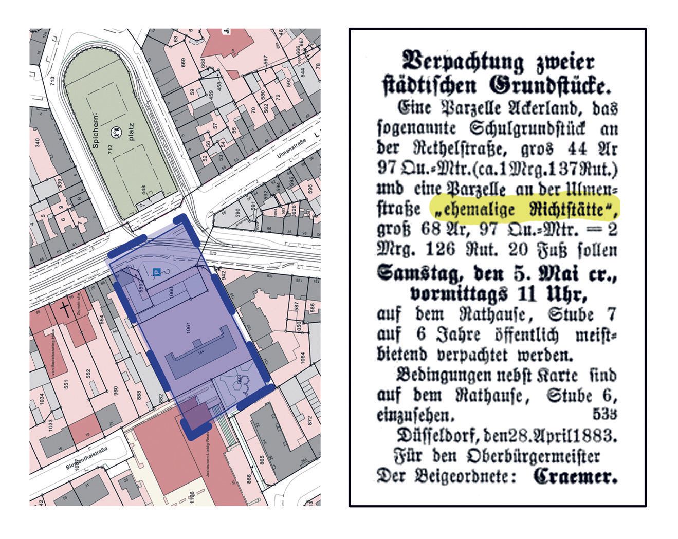Mit Hilfe des Düsseldorfer Vermessungs- und Katasteramtes konnten versunkene Parzellierungen wieder sichtbar gemacht werden. Auch Meldungen in historischen Zeitungen halfen, die Standorte zu wieder aufzufinden.