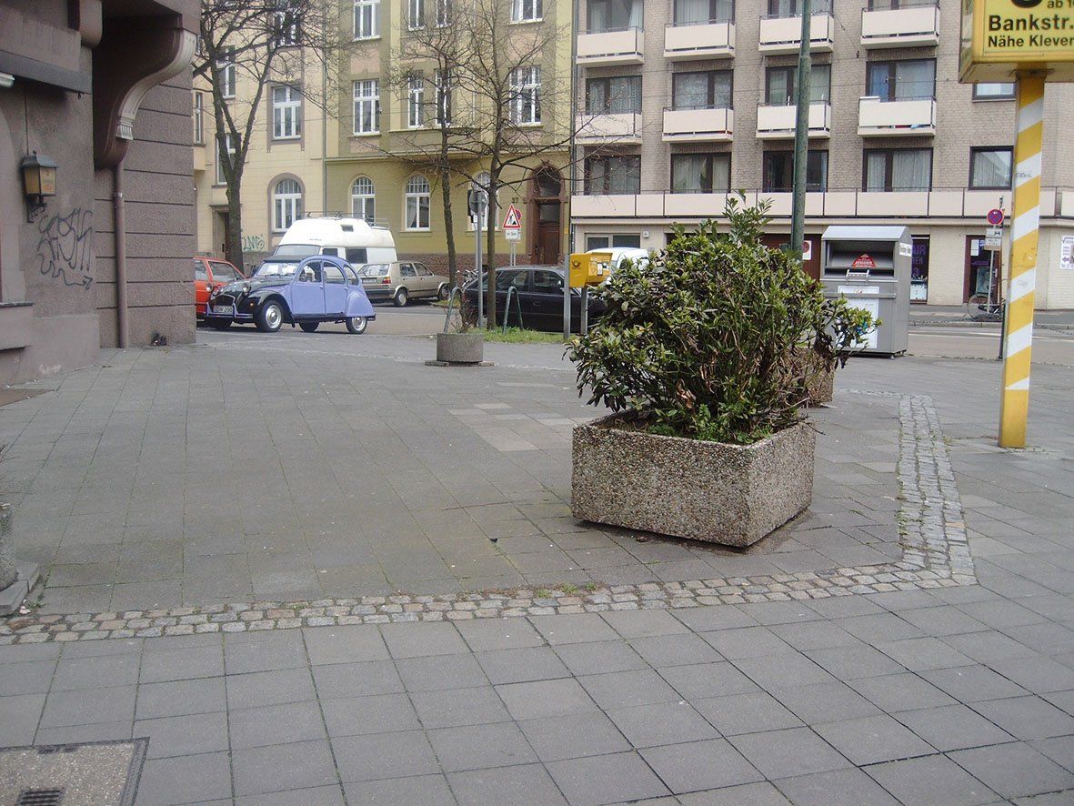 0111 Gottseidank war das zu teuer. Hansaallee: Historisches Mosaik neben der Verkehrsampel?