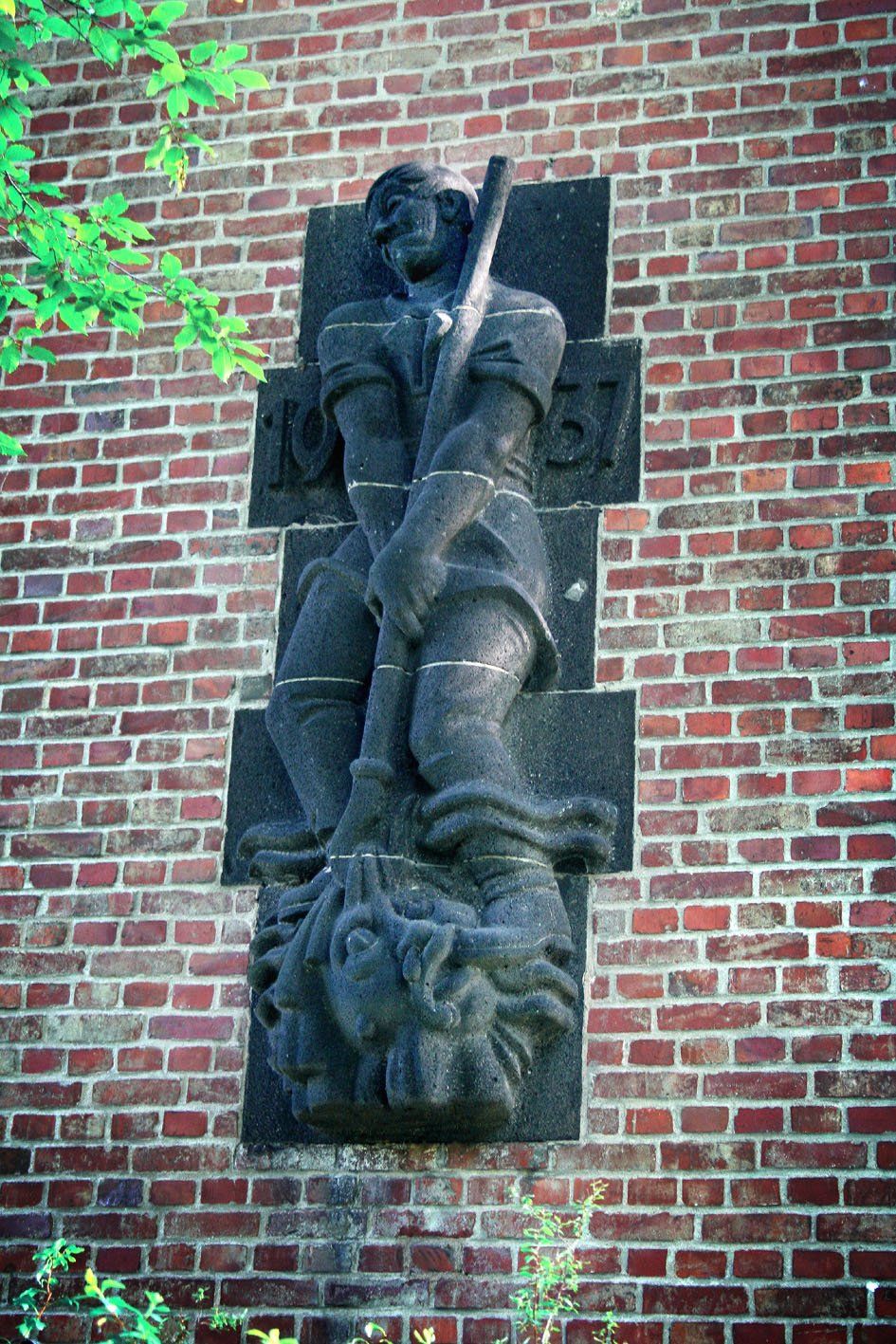 Als »Kunst am Bau« bekam jedes der Verwaltungsgebäude ein monumentales Relief für die Fassade. In Golzheim war es Willi Hoselmann, der einen heute verschwundenen »Kanalarbeiter mit garstiger Kröte« schuf.