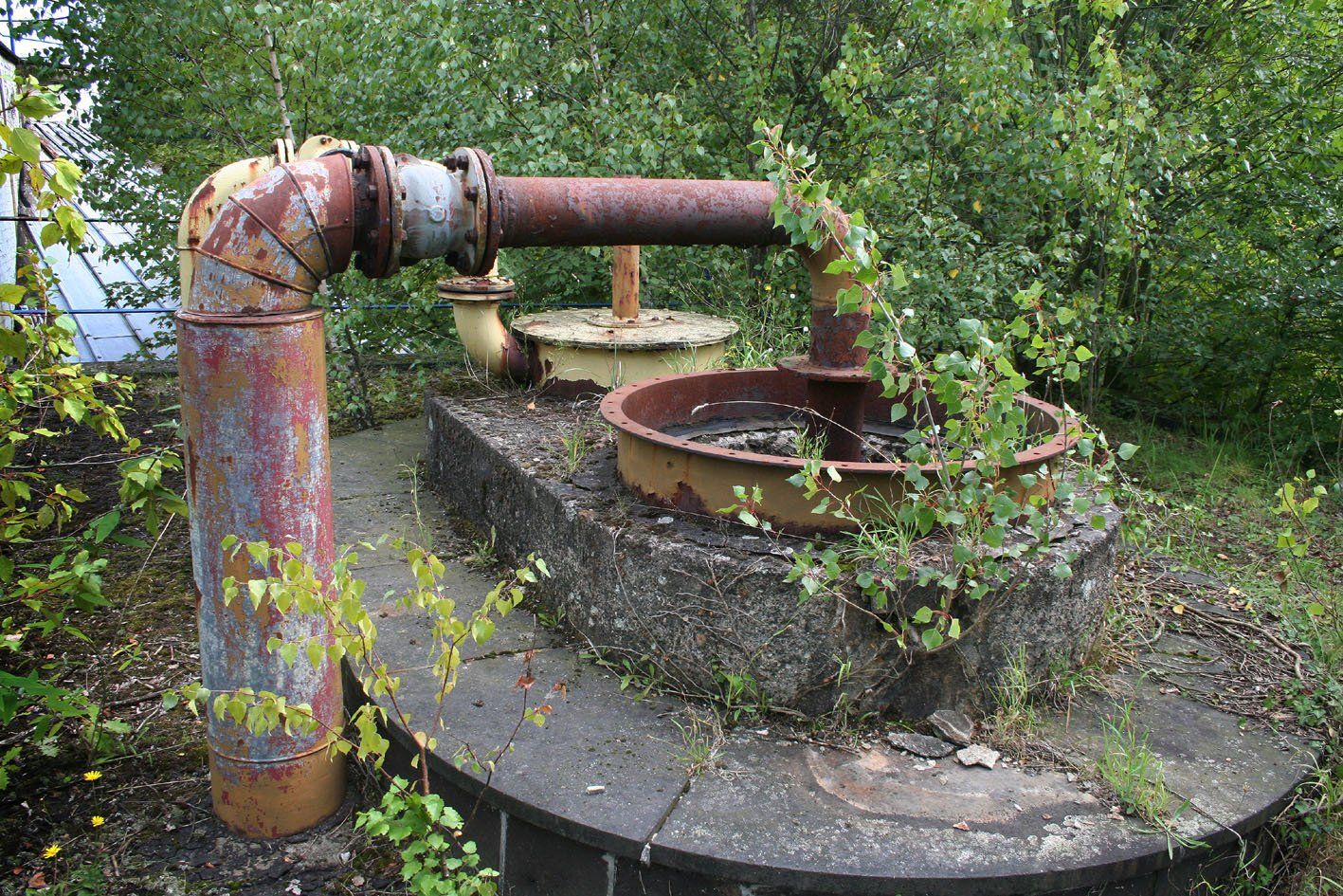 Oben: Mit der zeit erobert die Natur das Gebiet zurück. Die alten Rohranlagen rosten vor sich hin.