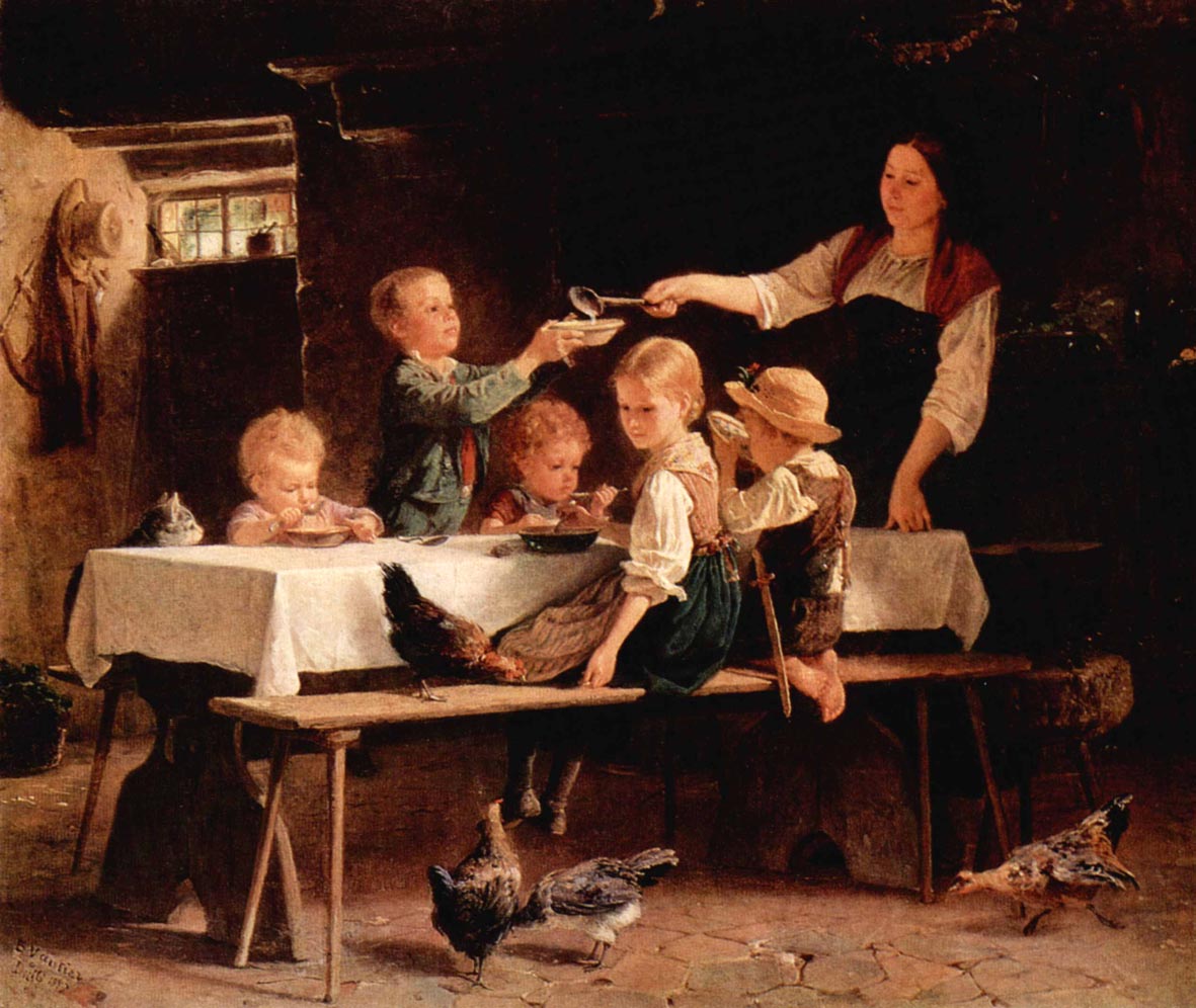 Dessen Brunnenstock aus Muschelkalk einen Puttenreigen zeigte, der einen schweren, mit Weinreben gefüllten Früchtekorb trug.