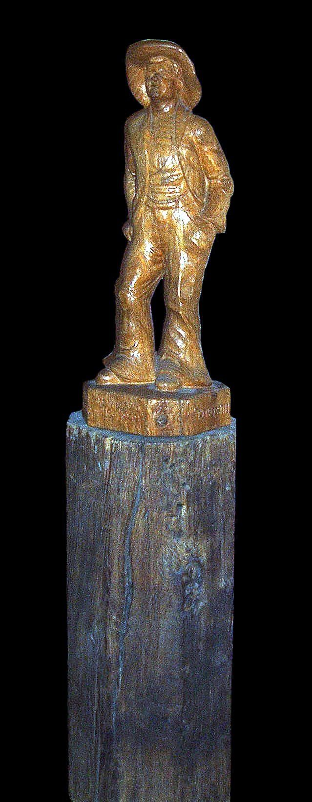 Auf eine Nachfrage bei der Zimmerer-Innung Düsseldorf fand dort eine freundliche Dame nach mehreren Tagen intensiver Forschung den Namen der Tochter des Besitzers heraus. Die hatte den geschnitzten Zimmermann tatsächlich in ihrem Wohnzimmer stehen, und er konnte fotografiert werden.