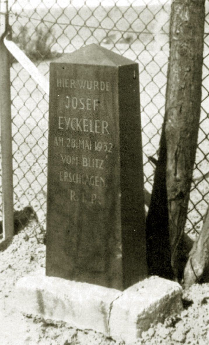 Fatalerweise hatte der Gratulant dabei einen Spaten geschultert, in den just in dem Augenblick ein Blitz einschlug. Josef Eickeler fiel auf der Stelle tot um.