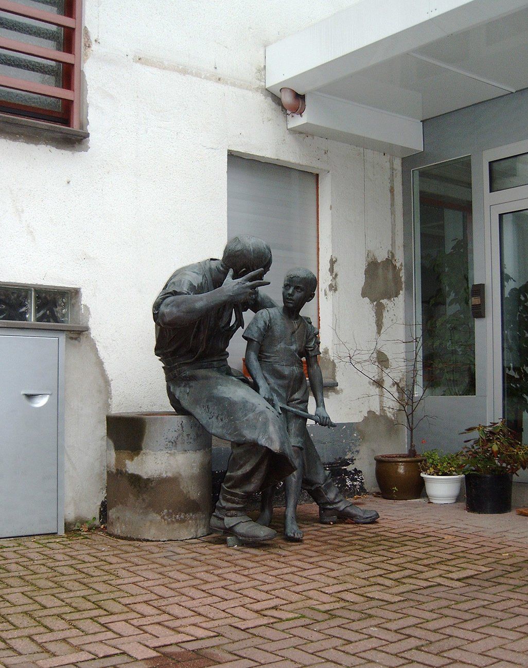 Rund 30 Jahre standen Schmied und Knabe so auf dem Privatgelände. Anfang der 1990e Jahre gab es Bestrebungen, die Gruppe als "Spur preußischer Herrschaft in Düsseldorf" im Innenhof des Stadtmuseums aufzustellen.